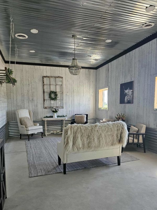 The event barn boasts 2 separate areas to rent depending on the size of your event. A large outdoor space, Bride & Groom Ready Rooms, Six individual bathrooms, plenty of parking, and much more. ( Picture of Bridal ready room)